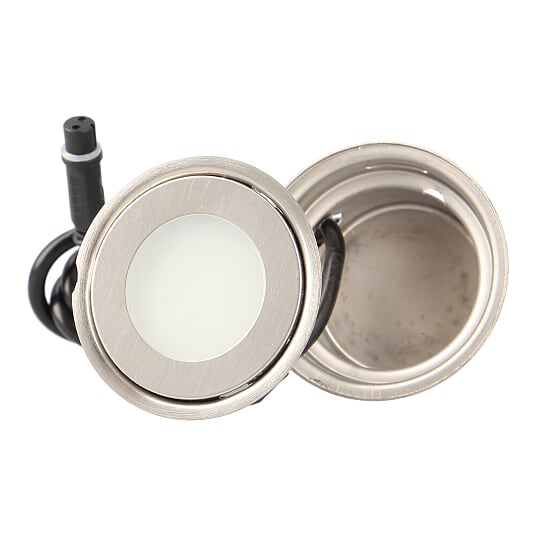 Dimbar markstensbelysning/decklight i rostfritt stål & glas med mycket hög finish och kvalitè. Armaturen som borras in i marksten och/eller trädäck är konstruerad med en helt ny teknik som ej kräver uppgrävning av sten eller borttagande av trallbrädor vid eventuellt behov av service/byte av ljuskälla.